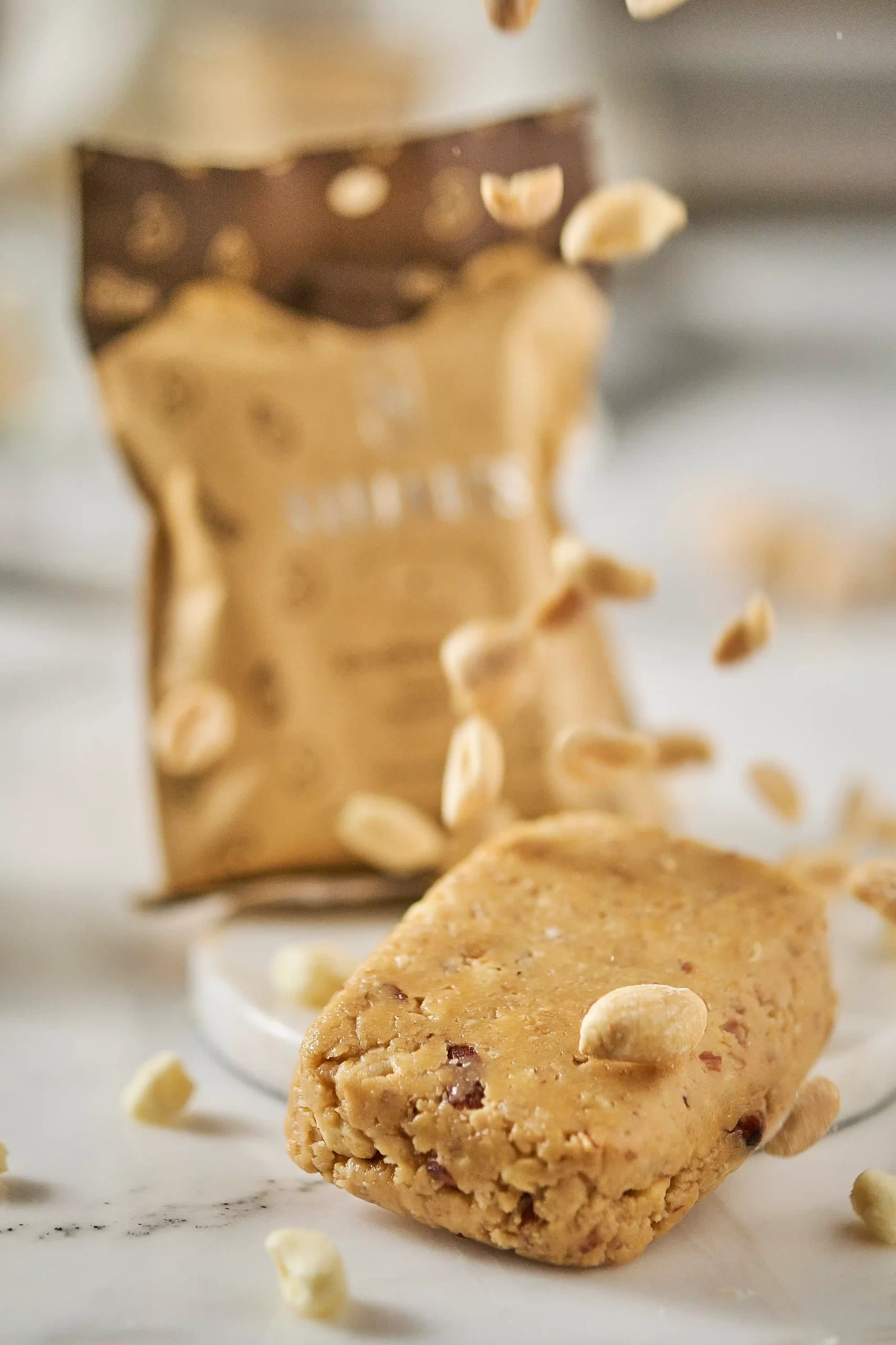 Barrita nutritiva de crema de maní, con almendras, chocolate y adición de proteina en polvo. Adquiere 1 barrita o tu caja de 12 unidades.